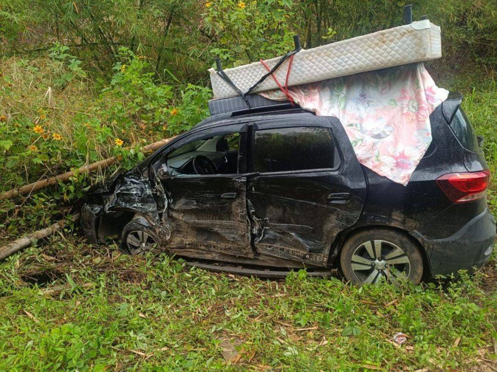 Na manhã deste domingo (5), um acidente envolvendo dois veículos foi registrado na rodovia Ilhéus–Uruçuca. A colisão aconteceu logo após uma curva, sob chuva, e envolveu uma Spin, placa RPF-4D75, que transportava vários ocupantes e levava um colchão amarrado no teto, e um Jeep Renegade, placa RDA-5J11 .