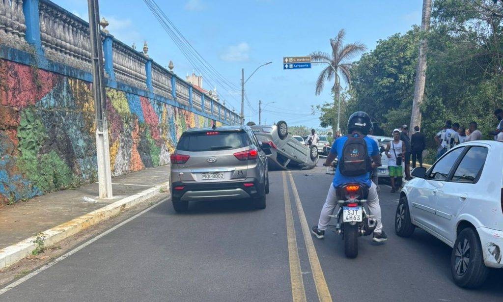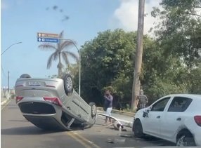 Um carro modelo HB20 capotou no início da tarde desta terça-feira (14), nas proximidades do paredão do cemitério da Vitória, no Alto Teresópolis, em Ilhéus.