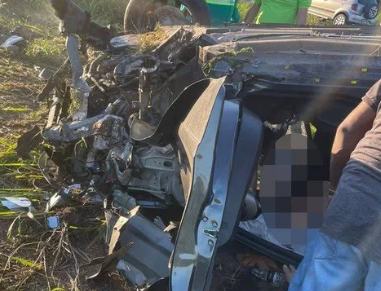 As causas do acidente seguem sob investigação. O veículo ficou completamente destruído.