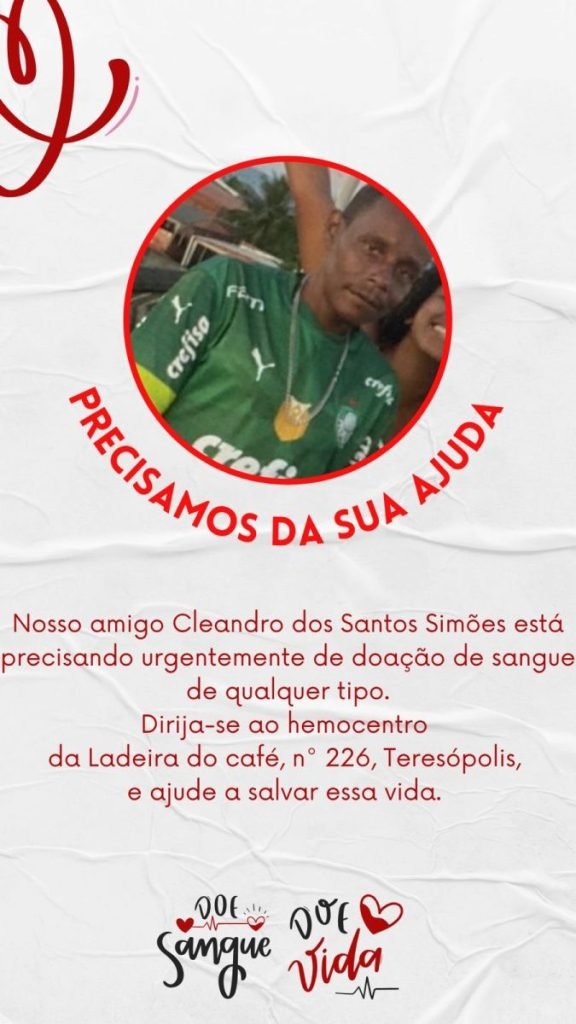 A família reforça o apelo à população para que compareça ao local de doação ou ajude compartilhando a campanha, ampliando o alcance e aumentando as chances de atendimento rápido.