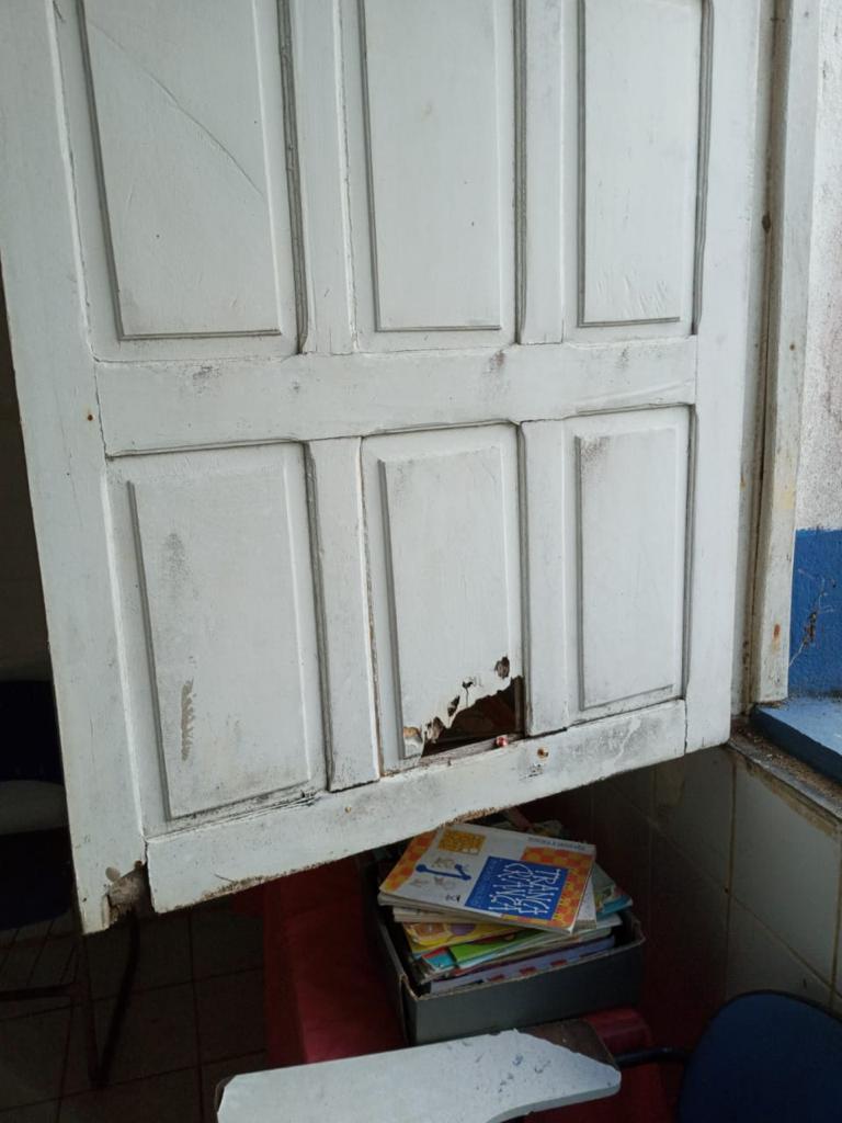 De acordo com a população, haviam animais acomodados na frente da escola, e parte do telhado se encontra desmoronado, acarretando em alagamentos nas salas de aula em períodos de chuvas, oferecendo riscos aos alunos e professores.