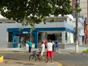 Bandidos explodiram uma agência do Sistema de Cooperativas de Crédito do Brasil (Sicoob), no Centro da cidade, na madrugada desta quinta-feira (3).