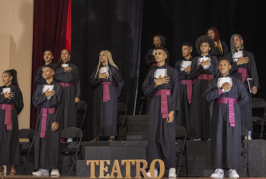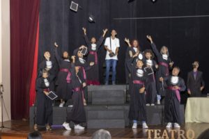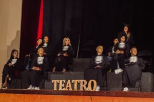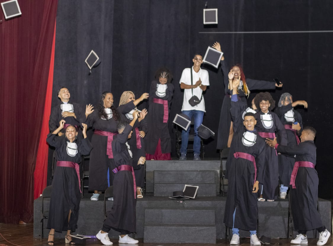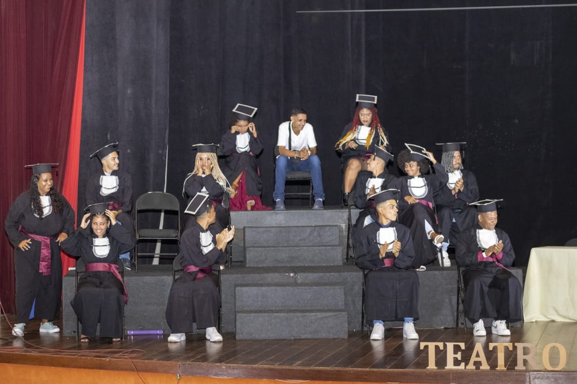 Os oradores da turma Andressa Silva, Braz de Sintra e Roney Júnior destacaram a importância do teatro como forma de aprendizagem no ensino médio e seus desafios “Ao contrário do que muitos pensam, o teatro não te ensina a mentir ou a ser falso. Te ensina a encontrar ou reencontrar a sua melhor versão. Você se descobre, entende o seu corpo e a sua mente, aprende a ouvi -los, desbloqueia as suas inúmeras possibilidades. Atuar não é fingir, é emprestar o seu corpo à um personagem que pode até não ter absolutamente nada a ver com você mas está ali, está entregue.